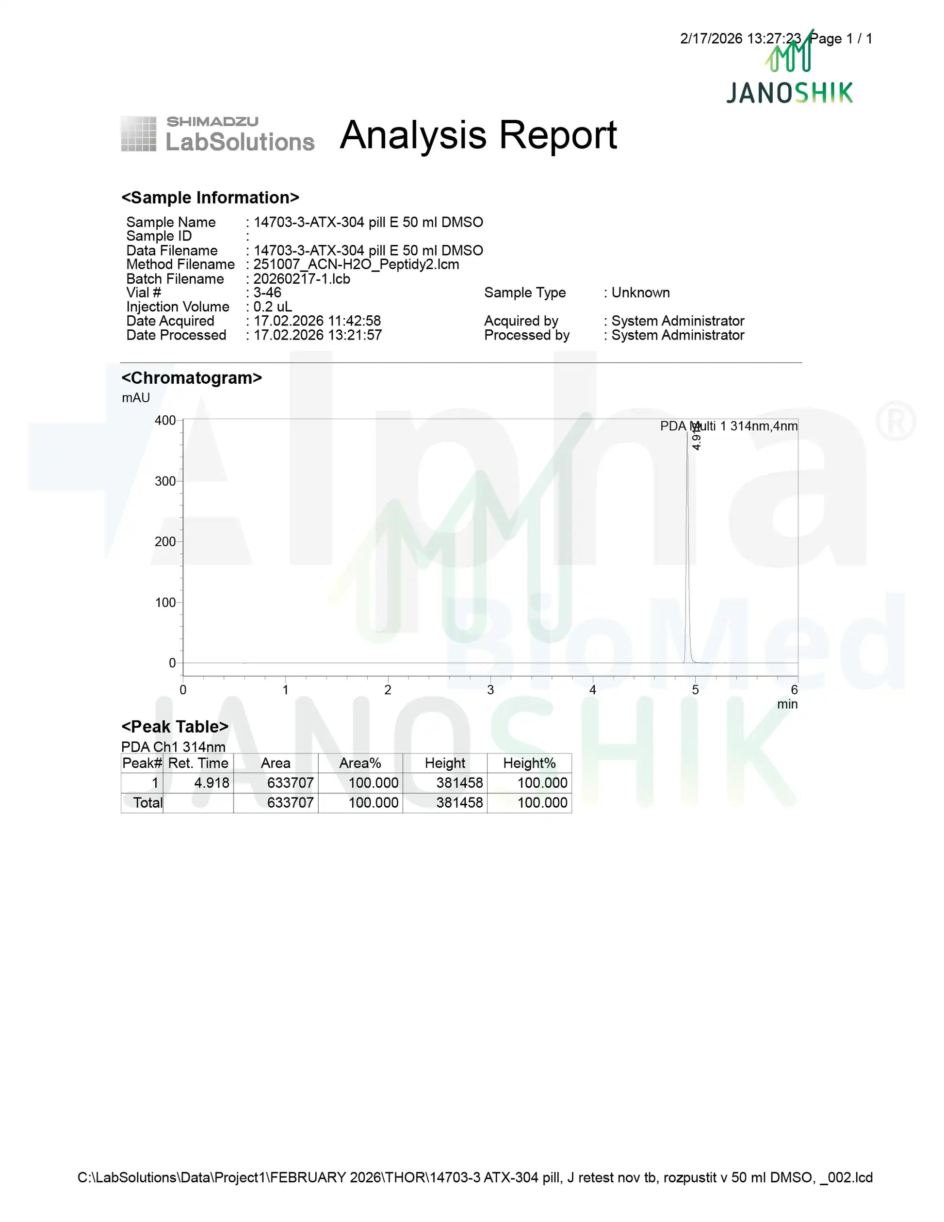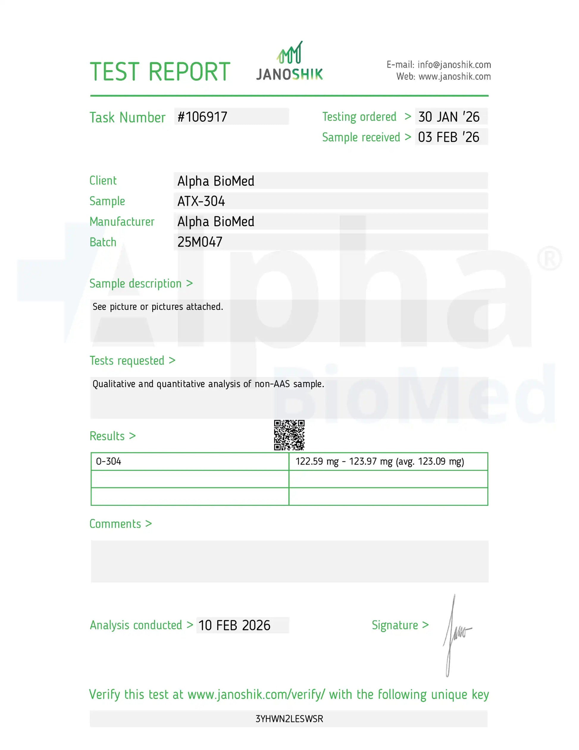 ATX-304 (100 mg) is a single-component research formulation supplied as solid-format tablets for controlled laboratory workflows. Each tablet contains 100 mg of ATX-304, with 60 tablets per container. The batch-specific Certificate of Analysis (COA) documents active-component identity, per-tablet content verification, physical characteristics, and relevant excipient information to support reproducibility, mass-balance calculations, and documentation control in research environments.