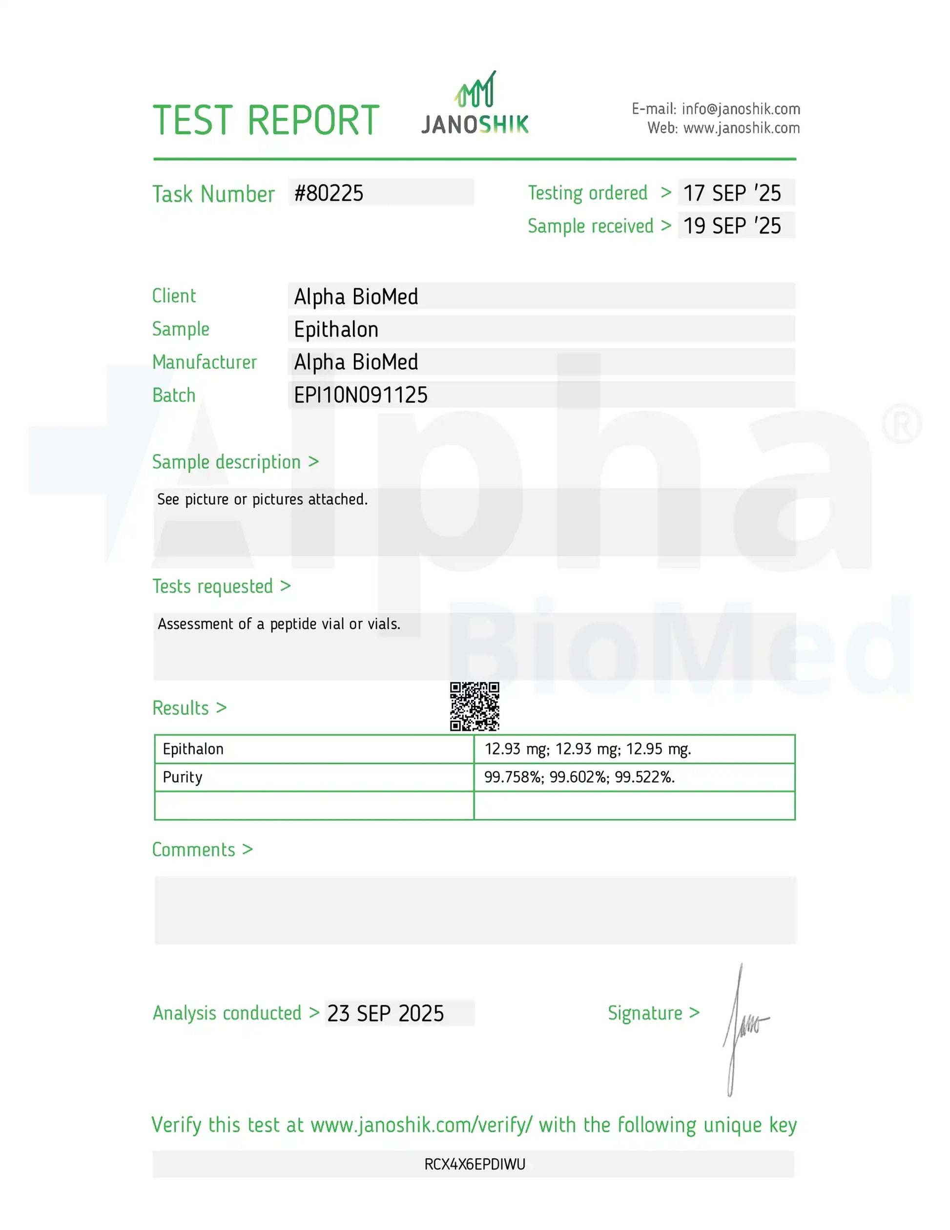 - Research suggests Epithalon may improve the body’s resistance to oxidative stress and support DNA repair mechanisms, helping to prevent cellular damage and age-related diseases.