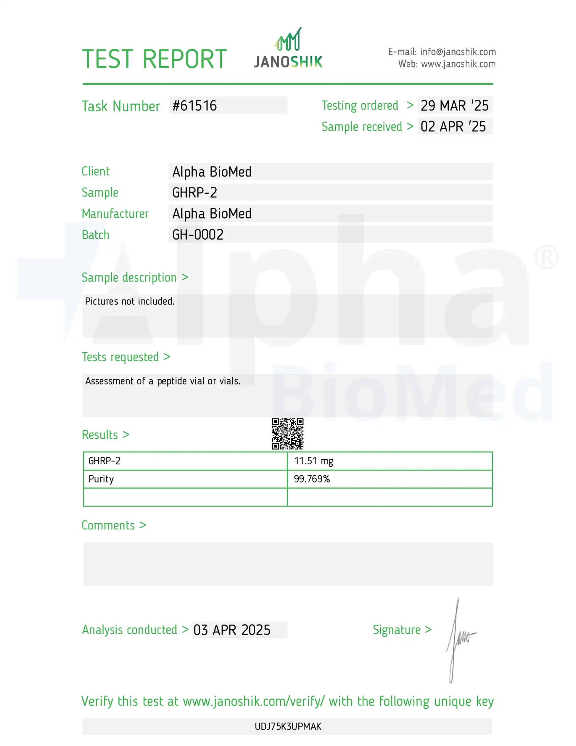 - GHRP-2 (5mg) is a potent growth hormone-releasing peptide that stimulates the pituitary gland to increase natural growth hormone (GH) production, leading to enhanced muscle growth, fat metabolism, and recovery.