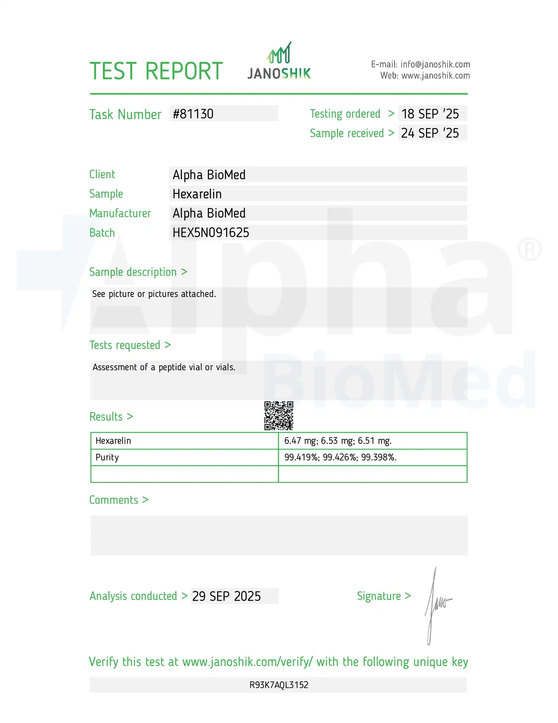 - Perfect for individuals seeking muscle growth, fat loss, and enhanced tissue repair, Hexarelin (5mg) is a powerful tool for optimizing growth hormone levels and overall performance.