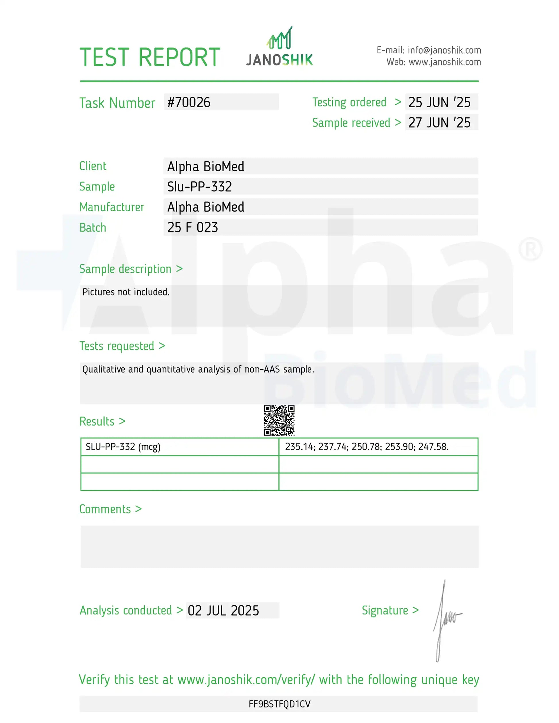 - Ideal for researchers exploring fat loss, endurance, and mitochondrial performance, SLU-PP-332 (250mcg) Tablets x60 provide a targeted approach to investigating advanced metabolic pathways.