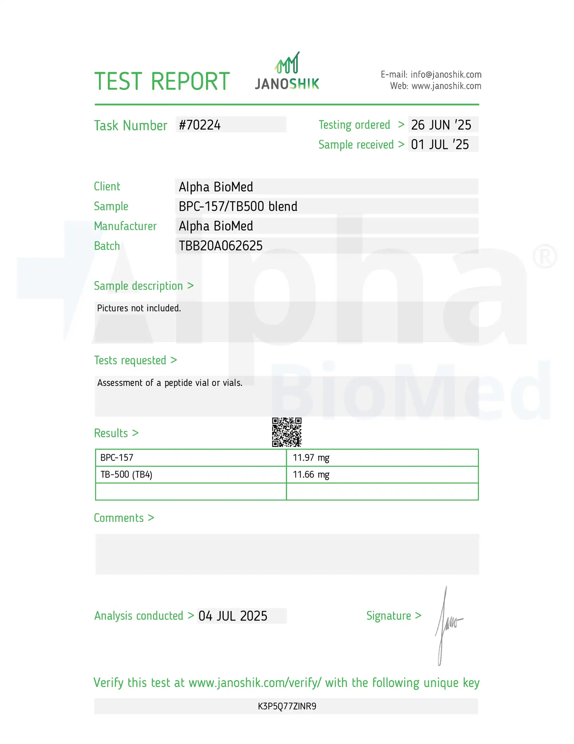 • This combination enhances tissue regeneration, reduces recovery time, and promotes anti-inflammatory effects, making it ideal for advanced recovery and performance optimization.